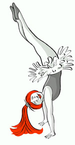 Miss Acrobatics - an opera singer who specialises in coloratura (the decoration of a written melody in the shape of runs, roulades and cadenzas) - her voice is very agile. Rossini's operas were written to showcase the virtuosity of the greatest singers of his day.