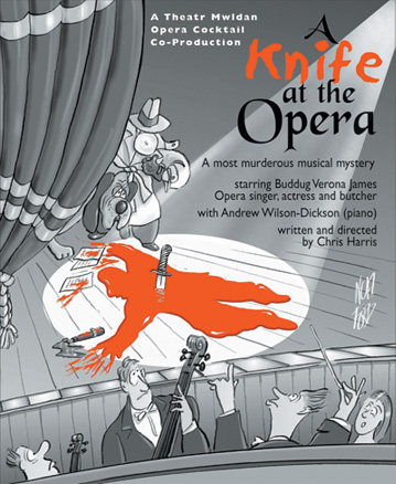 But Buddug James new one woman show - co-produced by Opera Cocktail and Theatr Mwldan - is guaranteed to dry up any critical ink. A Knife At The Opera - inspired by a particularly nasty review that Buddug suffered at the hands of a ferocious opera critic - deals with murder, mystery and music. Six dead critics, six opera diva suspects and one super sleuth to solve the mystery - DI Gethin Gumshoe backed by nimble-fingered Pc Andrew Wilson-Dickson at the keyboard.