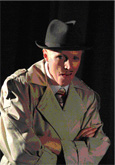 As Gumshoe, James the actress comes into her own, with some good physical humour, some broad jokes; it’s a nice comic characterisation which creates a figure at times excessively self-confident at others very unsure of himself. The relationship with Wilson-Dickson’s policeman works well and Wilson-Dickson’s performance (beyond his well-established musicianship) has some nice comic touches. Occasionally the necessary costume changes, as James becomes each singer, shedding her Gumshoe raincoat (and moustache) for something more feminine, do rather rob proceedings of momentum, for all of Wilson-Dickson’s work at his electronic keyboard, though even his obvious skill doesn’t entirely reconcile me to that instrument. If resources allowed, some use of film (of the various divas) might be a valuable addition here. But the quibble is a small one – the energy and humour generally carries the audience along well.