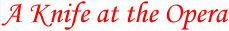 A Knife at The Opera is a lesson in the different demands made on the modern opera singer, Ms James offering a dazzling display of styles that combine pastiche with virtuosity: Miss Macho with her travesty roles, Miss Bagwitch the character actress, Miss Acrobatics and her coloratura, Miss Dot Demisemiquaver's cold precision, along with the self-evident Miss Baroque and Miss Diva.